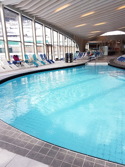 Fantastische Erfahrung: Wij hebben dankzij de Super ski pass gratis gebruik kunnen maken van het zwembad. Er is een bad waar je baantjes kunt trekken, een verwarmd zout buiten waterbad, een verwarmd recreatief bad, bubbelbad en twee super gave glijbanen. Eén stijle en één waarin je met een band naar beneden kunt. Halverwege kom je in een draaikolk en kan het zomaar zijn dat je achterstevoren verder naar beneden gaat, erg verrassend.