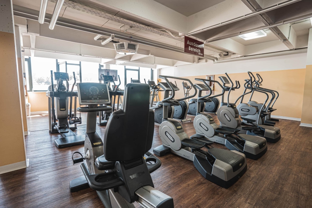 Zusätzlich zu Kraft- & Cardiogeräten erwarten dich an diesem Standort auch ein brainLight-Massagesessel, ein Vibrogym, Solarium und eine Elektrolytgetränkebar.