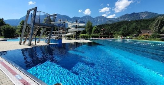 Fantastische Erfahrung: Verschiedene Becken zum Schwimmen, Spielen, Rutschen und für Kleinkinder. Sehr gepflegte Liegewiese und verschiedene Sitz- und Liegemöglichkeiten. Man schwimmt mit großartigem Blick auf die umliegenden Berge. Sauberes und angenehm temperiertes Wasser.