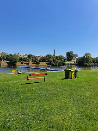 Positive Erfahrung: Sehr beliebt bei Familien. Große Wiese und langer Steg und Insel zum klettern und springen. Großer Spielplatz und eigenes Kinderbecken.